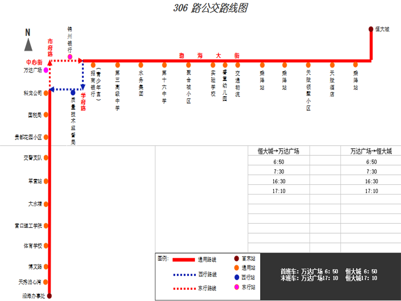 萬(wàn)達(dá)廣場(chǎng):6:50、7:30/16:30、17:10。